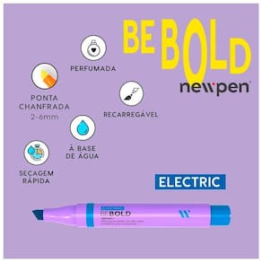 Contém: 01 un - Caneta Marca Texto Be Bold Electric Azul Escuro - New Pen. Decore e deixe seus estudos mais fofos e coloridos com 16 cores diferentes Marca Texto Be Bold, seu marca-texto mais instagramável e cheiroso Arca-texto com tinta incolor Utilizado para misturar cores, fazer transição de uma cor para outra, ou ainda fazer efeito degradê. O Marca-texto Be Bold é um produto divertido e eficiente que vai deixar seu dia a dia mais colorido e alegre. - Recarregável. - Tinta perfumada. - Com cores incríveis para desenhar, ilustrar e colorir seus projetos. - Tinta à base de água de secagem rápida. - Para uso artístico ou . - Evite expor diretamente aos raios solares, tampe após o uso. - Não Recomendável para menores de 6 anos. Especificações: Cor: Electric. Tamanho: 14cm. Indicações: Para desenhar, ilustrar e colorir. Volume: 1 unidade. Carga: Tinta à base de água. Marca: Não Informado Ean: 7808260356041
