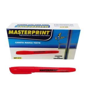 Caneta Marca Texto Vermelha com Ponta Chanfrada Masterprint MP 612 Pincel MP612 / Caixa com 12 Unidades