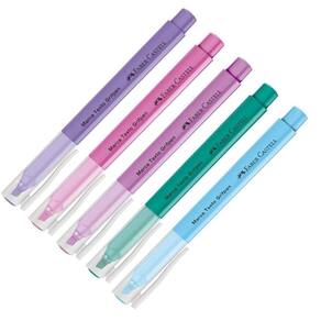 Caneta marca texto grifpen com aroma de chá e flores 5 cores faber castell marca: faber castell ponta: chanfrada cores: maçã verde, banho de flores, blueberry, chá de jasmim e flor de madressilva. Quantidade: kit com 5 unidades. Detalhes: cada uma com um aroma exclusivo que une a criatividade com uma experiência sensorial única design ergonômico com corpo triangular para maior conforto. Ponta chanfrada média, ideal para traços finos de 1.0mm e grossos de 4.0mm. Tinta à base de água que não mancha o verso da folha. Descubra uma nova maneira de destacar suas ideias com a grifpen atenção: imagem meramente ilustrativa. Pode ocorrer mudanças no tom da cor para o produto real ou mudanças na embalagem sem aviso prévio por parte do fornecedor/fabricante. - atenção não recomendável para crianças menores de 3 três anos por conter parte s pequena s que pode m ser engolida s ou aspirada s e ponta s aguda s funcional is .