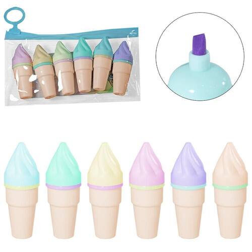 Caneta marca texto fofa 06 peças sorvete color Mini marca-texto fofo de sorvetinho - 6 cores divertidas