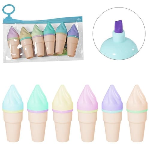 Caneta Marca Texto Fofa 06 Peças Sorvete Color