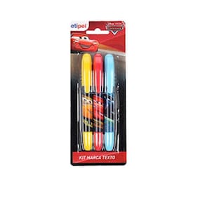 Caneta Marca Texto Infantil Colors Com 3 Pecas Carros