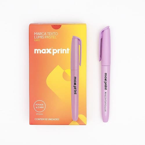 Caneta Marca Texto Lumis Pastel Maxprint Un Lilas Pastel A Caneta Marca Texto Maxprint Lumis Pastel Lilás oferece um toque de delicadeza e sofisticação na hora de destacar informações importantes. Com tinta em tom lilás pastel, proporciona marcações suaves, ideais para leituras prolongadas, organização de anotações e uso em planners ou bullet journals. Sua ponta chanfrada permite traços finos e grossos, adaptando-se perfeitamente a diferentes estilos de marcação. A tinta é à base de água, possui secagem rápida e não atravessa a maioria dos papéis, garantindo um uso limpo e eficiente. Parte da linha Lumis Pastel da Maxprint, essa caneta é perfeita para estudantes, profissionais e entusiastas da papelaria que valorizam design moderno, leveza e funcionalidade. Produto vendido por unidade. Ideal para compor kits de estudo ou complementar seu material de escritório com estilo e qualidade. Marca: Não Informado