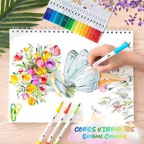 * Caneta Marcador Brush 12 cores Profissional: desempenho consistente e intuitivo.