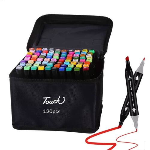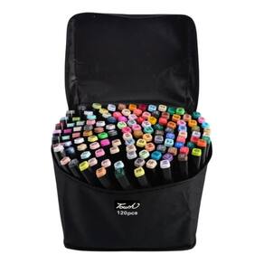 As canetas são de ponta dupla, duas pontas padrão, grossa e fina. Os marcadores são a base de álcool e não contém cheiro, ideal para crianças.