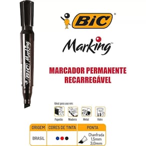 Caneta Marcador Permanente Marking 1.1 Mm Azul Caneta Marcador Permanente Marking 1.1 Mm Azul O Pincel Marcador Permanente BIC Marking te dará confiança para criar traços finos e grossos graças A precisão de sua ponta chanfrada Pode ser para marcar tudo que você quiser: papelão, madeira, vidro e metal Muito mais durável porque sua ponta é bloqueada e super resistente Pode ser recarregado com tinta para marcador BIC A secagem é rápida, porque sua tinta é à base de álcool o que evita borrões Marque conteúdos permanentemente com o Marcador Permanente Marking da BIC e tenha a de que suas informações estarão sempre marcadas Diferenciadores Ponta Chranfrada 1,5mm a 3,0mm Ponta bloqueada: maior durabilidade Recarregável Secagem rápida: a base de álcool Grip emborrachado Cor Azul Indicações Ideal para escrita em porcelana, madeira, metal, acrílico, papelão e plástico Utilizado para trabalhos manuais e artesanatos Embalagem Caneta Marcador Permanente Marking 1.1 Mm Azul 12 Meses Marca: Não Informado Ean: 7890925405461