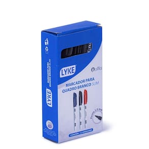Marcador para quadro branco, modelo slim, lyke, na cor preta, possui sua ponta redonda que proporciona melhores traços e visibilidade quando utilizado em grandes espaços. É ideal para uso didático e apresentações. Embalagem: caixa com 12 unidades. Cor: preto. Ponta: 2mm redonda. Atenção: imagem meramente ilustrativa. Pode ocorrer mudanças no tom da cor para o produto real ou mudanças na embalagem sem aviso prévio por parte do fornecedor/fabricante. - atenção não recomendável para crianças menores de 3 três anos por conter parte s pequena s que pode m ser engolida s ou aspirada s e ponta s aguda s funcional is .