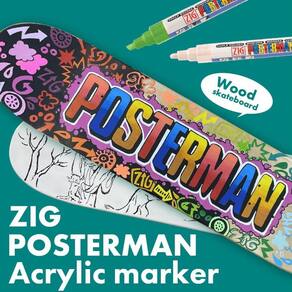 Madeira, Tela, Metal, Plástico, Couro, Cerâmica, Papel, Papelão, Foam Board, Vidro entre outras superfícies, o marcador Zig Posterman é multi uso, confiável que auxilia o artista na criação e execução do seu trabalho.
