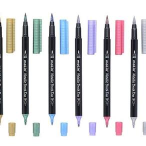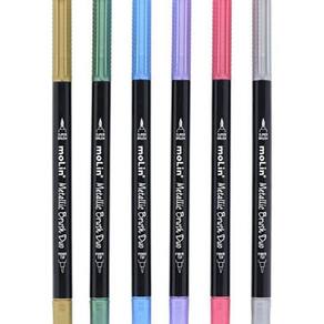Tinta metálica, de alta pigmentação, com grande capacidade de tinta e com 2 pontas.Mantenha as canetas na horizontal, para um melhor efeito metalizado.Ponta Brush 4,5mm e ponta fina 2,5mm. Disponível em Bolsa com 6 cores.Item sem necessidade de Registro de Inmetro