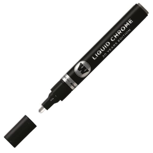 Marcador Molotow Liquid Chrome é o resultado de um longo processo de evolução da tinta Burner tm , e oferece efeito espelhado super realista quando aplicada em superfícies lisas não absorventes, graças à sua alta pigmentação. Sucesso absoluto entre artistas de lettering, ilustradores e grafiteiros. Detalhes do produto: - Ponta: 4mm - Cor: Prata Cromado - Tinta à base de álcool - Tinta especial altamente pigmentada - Alto brilho - Alto cobertura - Permanente - Boa resistência Uv - Bait resistência e risco e produtos abrasivos - Recarregável - Ponta substituível - Marca: Molotow - Origem: Alemanha Marca: Molotow Ean: 4250397625515
