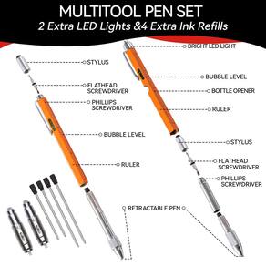 Este conjunto de ferramentas magnéticas meticulosamente projetado serve como um assistente indispensável em sua vida diária e é uma escolha excepcional entre presentes masculinos, especialmente para aqueles que procuram presentes de elefante branco para adultos ou presentes exclusivos para o pai. Perfeito como presente de aniversário para homens, entende a frustração de procurar pequenas porcas e parafusos que caíram nas profundezas da sua bancada. Com ímãs de alta intensidade, alças ergonômicas e uma luz LED embutida, este conjunto versátil de ferramentas permite que você enfrente facilmente uma variedade de situações com facilidade. Características: Ferramenta multifuncional: combina várias funções para máxima conveniência. Ultraportátil: perfeito para qualquer lugar, pronto quando você precisar. Durabilidade robusta: alumínio de grau militar para uso duradouro. Especificações: Tipo de material: metal. Quantidade de embalagem: 2 Cor: preto/prata/laranja/azul A embalagem inclui: 2 canetas multiferramentas. 2 lâmpadas LED. 4 refil de caneta. - Presentes de Natal masculinos: procurando um presente de Natal que impressionará o destinatário. Esta caneta 11 em 1 é a resposta. Simboliza novidade e presta homenagem ao gosto e praticidade. Seja para entusiastas de bricolage ou artesãos qualificados em vários campos, este presente trará alegria e satisfação sem precedentes - Ferramentas de design portáteis: com seu tamanho compacto, esta caneta cabe sem esforço no seu bolso ou bolsa, ocupando o mínimo de espaço, mas pronta para fazer uma grande diferença quando necessário. Seja para viagens diárias; viagens ao ar livre; ou projetos criativos, garante que suas necessidades sejam atendidas instantaneamente - Durabilidade garantida: Feita de alumínio de grau militar premium, esta caneta garante robustez e longevidade, oferecendo textura e sensação excepcionais. Dá a você paz de espírito durante cada exploração e empreendimento criativo - Meias para mulheres: sob medida para quem valoriza a praticidade e a qualidade, dois tipos diferentes desta caneta multifuncional estão disponíveis. Eles servem como companheiros confiáveis para aventuras ao ar livre e ajudantes úteis para tarefas domésticas diárias, cumprindo várias funções com facilidade - Caneta multifuncional 11 em 1: esta caneta 11 em 1 é mais do que apenas uma elegante caneta esferográfica preta; é uma ferramenta versátil que integra uma lanterna LED; chaves de fenda Phillips; réguas padrão e métricas; uma caneta de borracha; um nível e um abridor de garrafas. Cada função atende precisamente às suas necessidades na vida diária, aventuras ao ar livre e atividades criativas