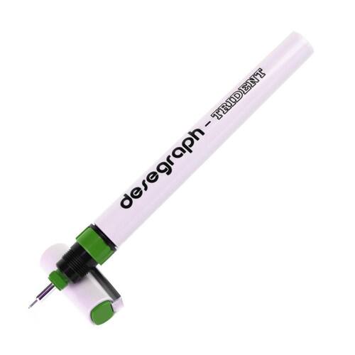 Caneta para nankin trident desegraph recarregável cd 0. 4mm - duplo sistema de vedação - ponta de aço inox - ponta mais curta evita vibrações quando utilizado em papéis ásperos, permitindo uma escrita mais suave e macia - moderno sistema de labirintos mantém a pressão interna sempre constante, proporcionando um fluxo de tinta uniforme e traços precisos - embulo de grande curso e com contra-peso de cinza, torna mais fácil o desentupimento da ponta