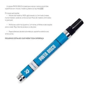 Ferramenta ideal para você cobrir riscos em arranhões em sua casa ou em seu local de trabalhoprática e de fácil utilização, com a pinta risco você resolve problemas com riscos na hora. Elimine pequenos riscos em móveis e diversos outros tipos de materiais.Confira no vídeo acima e entenda porque a pinta risco é a solução ideal para sua casa ou empresaalto rendimento: cada caneta tem capacidade de cobrir até 200 metros linearesfácil de aplicar: prática para usar onde você estiver, sempre que precisarseca rápido: após aplicação, seca ao toque em 2 minutos e a cura total em 4 horasutilize perfeitamente em: madeira - pvc - plástico - aço - mdf - mdp - alumínio - rejuntesprincipais aplicações:móveis de madeira, mdf, aglomerado ou laminado mesas, home theaters, cadeiras, entre outros - pisos de madeira, laminados ou parquet, molduras e adornos quadros, luminárias, enfeites e decorações para a casa - rejuntes de azulejos ou de pisospeças plásticas de eletrodomésticos, aparelhos eletrônicos, entre outrospequenos detalhes que fazem toda diferença.Atenção: testar em uma pequena parte do objeto a ser pintado para verificar compatibilidade de cor.Trabalhamos com diversas cores, consulte a disponibilidade Marca: Não Informado Ean: 1000000162165