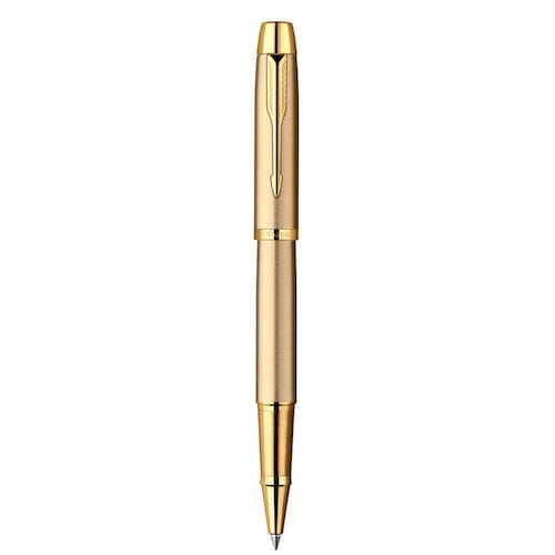 Comprimento: 14 cm fechada Diâmetro: 12 mm Peso: 35 g Corpo dourado escovado. Detalhes dourados. Carga preta ou azul com ponta média : 2 anos Origem: França