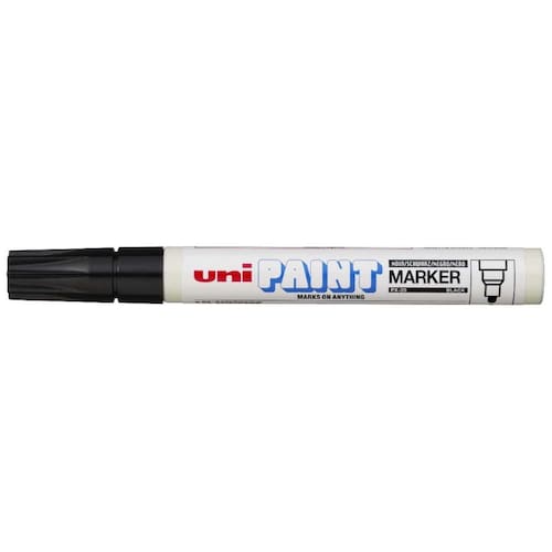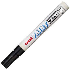 Caneta Permanente Uni Paint Px 20 Preta Industrial - Uniball Caneta Paint Marker Uni Ball PX-20 marca em qualquer tipo de superfície, em qualquer cor. A versatilidade do Marcador Uni-Ball Paint Marker permite escrever sobre superfícies como metal, plástico, cristal, tela, sem perder sua cor intensa. Caneta Paint Marker Uni Ball PX-20 é o marcador mais popular Utilizado nas casas de diversos países, além de ser utilizado amplamente por profissionais da indústria, resiste à água e mesmo que a superfície que sofra altas temperaturas, a tinta não escorre, nem borra. Características: Ponta: triangular Traço: 2.2mm a 2.8mm Carga: 300m Tinta: base de solvente permanente Secagem de 1 a 2 minutos. Tecnologia Marca - Uniball Conteúdo - 1 Caneta Para preenchimentos e detalhes com tinta permanente, esta é a caneta.