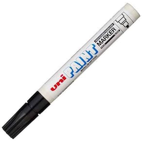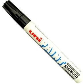 Caneta Permanente Uni Paint Px 20 Preta Industrial - Uniball Caneta Paint Marker Uni Ball PX-20 marca em qualquer tipo de superfície, em qualquer cor. A versatilidade do Marcador Uni-Ball Paint Marker permite escrever sobre superfícies como metal, plástico, cristal, tela, sem perder sua cor intensa. Caneta Paint Marker Uni Ball PX-20 é o marcador mais popular Utilizado nas casas de diversos países, além de ser utilizado amplamente por profissionais da indústria, resiste à água e mesmo que a superfície que sofra altas temperaturas, a tinta não escorre, nem borra. Características: Ponta: triangular Traço: 2.2mm a 2.8mm Carga: 300m Tinta: base de solvente permanente Secagem de 1 a 2 minutos. Tecnologia Marca - Uniball Conteúdo - 1 Caneta Para preenchimentos e detalhes com tinta permanente, esta é a caneta. Ean: 4902778912379