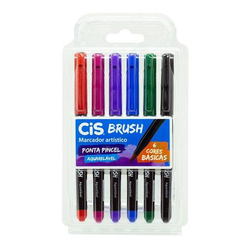 Caneta pincel Brush Aquarelável - com 6 cores básicas - Cis