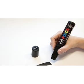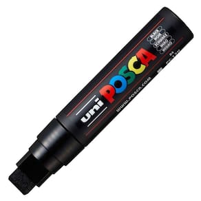 Caneta Posca Uni Ball Extra Largo PC-17K tem capacidade de traço de até 17mm, tinta pigmentada a base de água com cores vibrantes. Deixe a sua caneta Uni Posca secar depois de uso e sua tinta cobrirá completamente a cor aplicada anteriormente erroneamente. A tinta da caneta Uni Posca não escorre e é filtrada de modo que você possa escrever em cima de uma pilha de papéis. Caneta Uni Posca escreve sobre esboços, desenhos, telas, fotografias, metal, vidro, plástico e muito mais.
