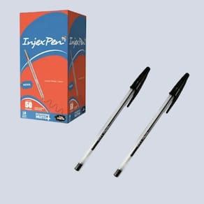 Garanta agora sua caixa com 50 canetas esferográficas pretas Injex Pen 1.0mm e eleve sua experiência de escrita. Clique em Comprar Agora e escreva com sofisticação e desempenho