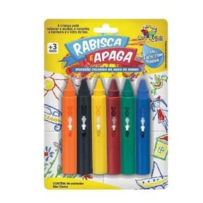 Modo de Usar: Pinte seu corpo, os azulejos e a banheira com os gizes Rabisca e apaga. Lave com água para remover o giz.
