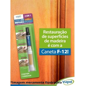 a caneta f12 repara madeira é uma caneta 3 em 1, de reparo simples e rápido para retoque em pequenas imperfeições, arranhões, riscos, marcas de amassados ou cortes em qualquer superfície de madeira. Combina um bastão de cera, um nivelador e uma caneta com stain e é o produto ideal para reparo de móveis, armários, aparadores, portas, molduras e até mesmo pisos. Formulada com stain permitindo que seu projeto seja reparado e tenha a proteção adequada para sua maior durabilidade. Vantagens - possibilita o reparo em superfícies de madeiras de uma maneira rápida e prática; - preenche: realizar o preenchimento dos arranhões ou áreas danificadas; - nivela: remoção do excesso preparando a superfície para o acabamento; - pinta: realizar o acabamento aos arranhões ou áreas danificadas, completando o processo de restauração. A caneta f12 repara madeira é indicado para: - superfícies de madeiras; - superfícies em mdf e mdp. Pode ser utilizado para uso doméstico, artesanal e profissional. Especificações: - marca: viapol - modelo: v09116281 - cor: ipe - tipo de tinta: massa madeira conteúdo da embalagem 01 um caneta f12 repara madeira ipe viapol