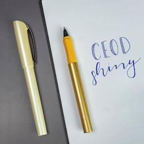 Caneta Rollerball Ceod Shiny Bronze - Azul A nova Caneta Rollerball Ceod, tem o selo de qualidade made in germany da Schneider, com perfil ergonômico emborrachado e ponta de aço inoxidável de alta qualidade, com ponta de irídio de traço médio. Ceod é uma caneta rollerball com design moderno, corpo metálico e 5 opções de cores. Ela é equipada com um clipe de metal resistente e cartucho de tinta padrão, azul royal. Igualmente adequado para destros e canhotos.