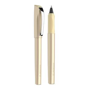 Caneta Rollerball Ceod Shiny Light Gold - Azul A nova Caneta Rollerball Ceod, tem o selo de qualidade made in germany da Schneider, com perfil ergonômico emborrachado e ponta de aço inoxidável de alta qualidade, com ponta de irídio de traço médio. Ceod é uma caneta rollerball com design moderno, corpo metálico e 5 opções de cores. Ela é equipada com um clipe de metal resistente e cartucho de tinta padrão, azul royal. Igualmente adequado para destros e canhotos.