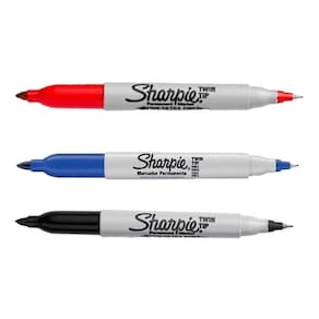 A Caneta Permanente Ponta Dupla Sharpie 3 Cores possui uma ponta fina em uma extremidade e uma ponta ultra fina na outra.