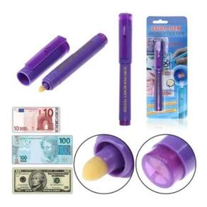 Caneta Euro Pen Testador De Dinheiro Nota Lilás Caneta Identificadora de Notas Falsas dinheiro . Excelente para seu comércio. Funciona perfeitamente em notas de Real, e também em Dólar, Euro, Libra Esterlina e Várias outras moedas do mundo. Benefícios - Mini Lanterna de Luz Ultra Violeta - Detectar Dinheiro - Ressalta as marcas d'agua em notas de Dinheiro e Cartões de Crédito. Modo de Uso da Caneta: 1- Com a caneta em mãos, faça um X xis ou um traço na nota cédula . 3- Se a marcação da nota cédula ficar com a cor escura, sua nota é 4- A marcação desaparece novamente depois de algumas minutos. Características gerais - Entidade: Detector de papel-moeda - Cor: Lilás Medidas do produto - comprimento: 10 cm - Largura: 16 cm - Altura: 10 cm - Peso total: 100 g Marca: Não Informado