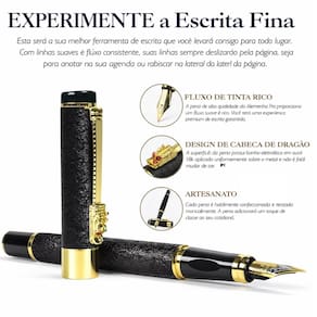Código: GN2713 Caneta Tinteiro Executiva Caligrafia Ponta Fina Dragon 0,5mm A Caneta Tinteiro Executiva Dragon oferece elegancia, desempenho e escrita suave. Com design exclusivo inspirado em detalhes orientais e acabamento refinado, ela conta com ponta fina 0,5mm que garante tracado preciso e fluido. Ideal para caligrafia, assinaturas e . Principais Caracteristicas Design premium com detalhes estilo Dragon Escrita suave e de alta precisao Ponta fina 0,5mm Ideal para caligrafia e escrita elegante Corpo ergonomico para conforto prolongado Material resistente e acabamento sofisticado Recarregavel e duravel Aplicacoes Indicadas Caligrafia artistica Assinaturas Escritorio e ambiente Estudos e anotacoes Presentes finos Uso diario Especificacoes Tipo: Caneta tinteiro Espessura da escrita: 0,5 mm Estilo: Dragon executivo Material: Liga metalica de alta resistencia Sistema: Recarregavel por cartucho ou conversor Vantagens Traço fino e suave Design unico que se destaca Excelente equilibrio na mao Escrita fluida sem falhas Ideal para quem ama canetas diferenciadas Conteudo da Embalagem 1 caneta tinteiro executiva Dragon 0,5mm