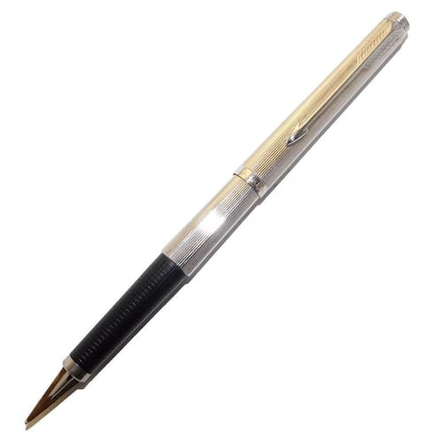 Caneta Tinteiro Parker 180 Folheada Prata Francesa Ouro 14K