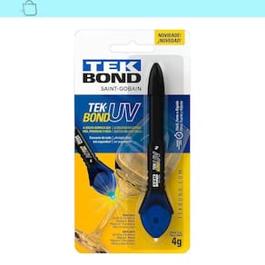 DescriçãoCaneta uv tekbond cola e seca é uma cola indispensável para quem quer ter um bom resultado rapidamente e sem muito esforço faça reparos duradouros em segundos com a caneta uv tekbond cola e seca. Basta aplicar a resina e ativar o local com a luz uv presente na caneta para promover uma solda resistente ou preencher rachaduras. Com a caneta uv tekbond cola e seca, você pode facilmente fazer reparos em qualquer tipo de material, sempre que precisar.DetalhesA cola uv é ideal para materiais difíceis de serem soldados, como plástico, vidro e metal. É uma ótima opção para quem quer fazer reparos rápidos e duráveis.EspecificaçõesMarca tekbondContém 1 unidade de 4gCor transparenteAdesão fácil, forte e rápidoValidade: 12 mesesCaracterísticasBasta aplicar a resina e ativar o local com a luz uv presente na caneta para promover uma solda resistente ou preencher rachaduras.As imagens são meramente ilustrativas