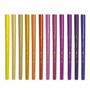 - 1 Estojo de Canetas Brush Ponta Dupla Pincel + Superfina Vibes Sketch Entardecer 12 Cores TRIS