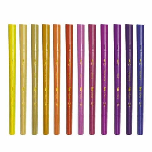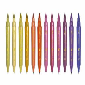 Canetas Brush Ponta Dupla Pincel + Superfina Vibes Sketch Entardecer 12 Cores TRIS -