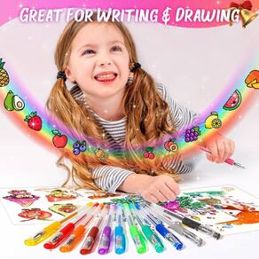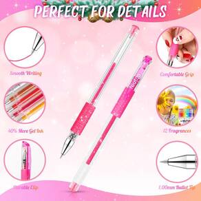 Canetas de gel de glitter perfumadas de 12 cores vibrantes para crianças. Variedade de 12 aromas frutados. Perfeito para adicionar um pouco de brilho aos seus projetos de artesanato, notas codificadas por cores, incentivos para desenhar, colorir e ensinar.