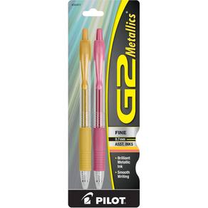 PILOT Canetas de gel recarregáveis e retráteis G2 Metallics, ponta fina, tintas de cores diversas, pacote com 2 (34401)