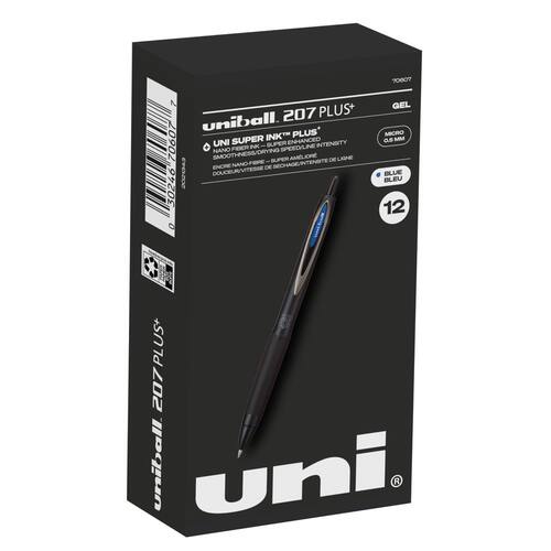 Canetas de gel rollerball retráteis uniball 207 Plus+, pacote com 12 canetas em azul com pontas de microponto de 0,5 mm - A Uni-Super Ink+ é suave, vibrante e protege contra água, desbotamento e fraude - Nada mais parecido - A formulação de tinta exclusiva da Uni é de qualidade arquivística, nossas tintas de longa duração são de alta qualidade e imunes ao desbotamento, fraude e água; a escolha óbvia para profissionais e amadores, e todos os demais - Simplesmente a melhor - Cada caneta Uniball é meticulosamente projetada, fabricada e montada no Japão; nossos acabamentos de alta qualidade Além de nossos designs elegantes, somos o padrão quando se trata da experiência de escrita ideal - Vários tamanhos de ponta - Escolha entre 0,5 canetas de microponta e 0,7 canetas de ponta média; as melhores canetas para colorir, desenhar, estudar, trabalhar e escrever com precisão - Várias opções de cores - Escolha entre canetas de tinta preta, tinta azul, tinta vermelha, tinta roxa e canetas multicoloridas; se você precisa de canetas azuis e pretas ou canetas coloridas, temos coberto! - Várias quantidades - Vários tamanhos de embalagem, de 2 canetas a 12 canetas a granel; canetas a granel são essenciais para a sala de aula do ensino médio, essenciais de enfermagem para o trabalho e essenciais para estudar na faculdade