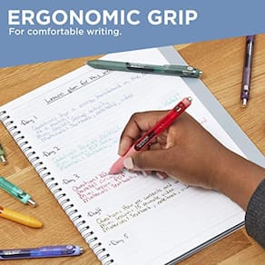 Espalhe alegria (não manchas) com canetas de gel joy de tinta de papel Mate. Com tinta de gel vívida que seca 3x mais rápido* para redução da mancha, é como uma festa na página onde manchas não são convidadas. A cor brilhante garante que sua escrita será brilhante e cheia de diversão. Totalmente embrulhadas com uma pegada de conforto, essas canetas de gel têm um estilo suave que mantém a alegria fluindo tão rápido quanto seus pensamentos. *Vs Piloto G2 com base em tempos secos médios de Preto, Azul, Vermelho e Verde. Os tempos secos individuais podem variar de acordo com a cor.