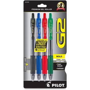 Pilot, Canetas de gel G2 Premium, ponta ousada, 1 mm, pacote com 4, cores diversas