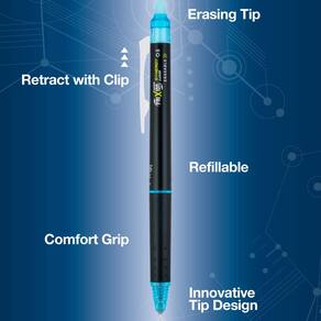 - Escreve suavemente, apaga de forma limpa: o clicker Pilot FriXion é uma caneta retrátil e recarregável que permite escrever, apagar e reescrever repetidamente sem danificar a página, graças à sua tinta de gel termossensível apagável