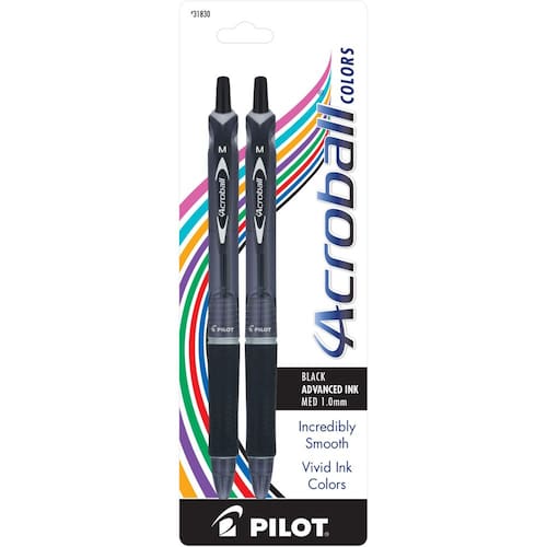 PILOT Canetas esferográficas recarregáveis e retráteis da Acroball Colors com tinta avançada, ponta média, tinta preta, pacote com 2 (31830)