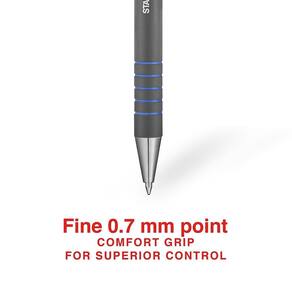 Canetas esferográficas retráteis Staples Postscript, ponta fina, tinta azul, dúzia (18266) - vendidas em 1 dúzia. - Canetas esferográficas retráteis para facilidade de uso - A tinta azul é fácil de ler - A ponta fina de 0,7 mm garante linhas nítidas a cada uso - Cano preto