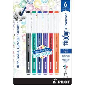 Pilot, Canetas marcadoras FriXion Fineliner apagáveis, ponta fina de 0,7 mm, pacote com 6, cores diversas