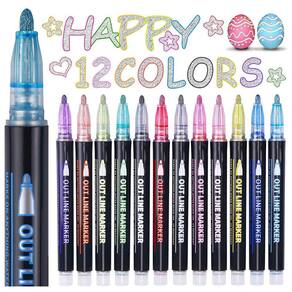 🎨 [Amplamente utilizadas] — As canetas marcadoras Outline são adequadas para artesanato, como álbum de fotos, livro de visitas, vale-presente de Natal, álbum de recortes, também para quase todas as superfícies, como pedras, madeira, vidro, metal, plástico, quadro branco e cerâmica. Estas 12 canetas de contorno adicionam um enfeite cintilante a vários artesanatos.