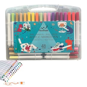 1 Estojo Canetinha Caneta Marcador 48 Cores Tinta Acrilica Permanente