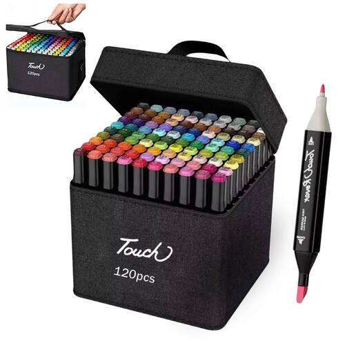 Canetinha Caneta Ponta Dupla 120 Cores Marcador Permanente Estojo Duas Pontas Bolsa Arte Desenho Pintura Cartaz