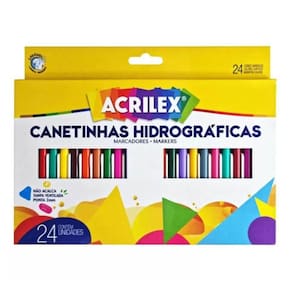 **AVISO: ESTAMOS TRABALHANDO NORMALMENTE COM TODOS OS ENVIOS***Descrição do produtoCaneta hidrográfica ACRILEX 24 cores, com corpo arredondado em plástico que garantem maior firmeza na pega, possui tinta de qualidade que garante cores mais vibrantes. Ideal para uso em trabalhos escolares. NÃO ACALCA - TAMPA VENTILADA - PONTA 2MM