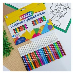 Chegou a hora de explorar a criatividade e deixar suas atividades artísticas coloridas com a Canetinha Hidrográfica 6903 da Acrilex. Com design moderno, possui 24 cores vivas e ponta fina de 2mm, não perca mais tempo e aproveite!