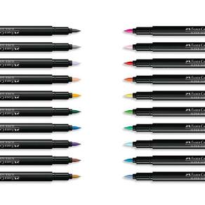As Canetinhas Hidrográficas Faber-Castell da linha SuperSoft têm design arrojado e moderno, com ponta pincel (brush) supermacia, perfeita para técnicas de Lettering e desenhos artísticos. A embalagem é reutilizável e 100% reciclável, e a tinta é lavável e atóxica.