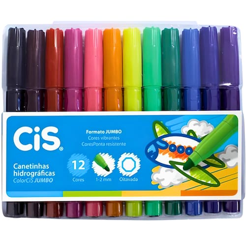 Canetinhas Hidrográficas ColorCis Jumbo - Estojo com 12 cores. Cores vivas. Ponta mais grossa. Tinta não tóxica, à base de água.